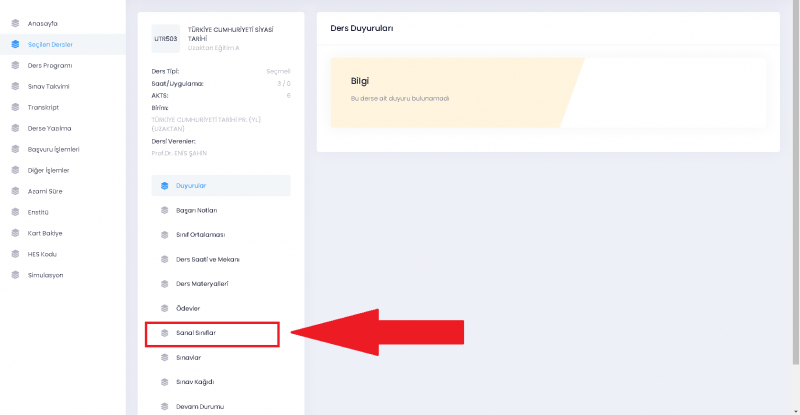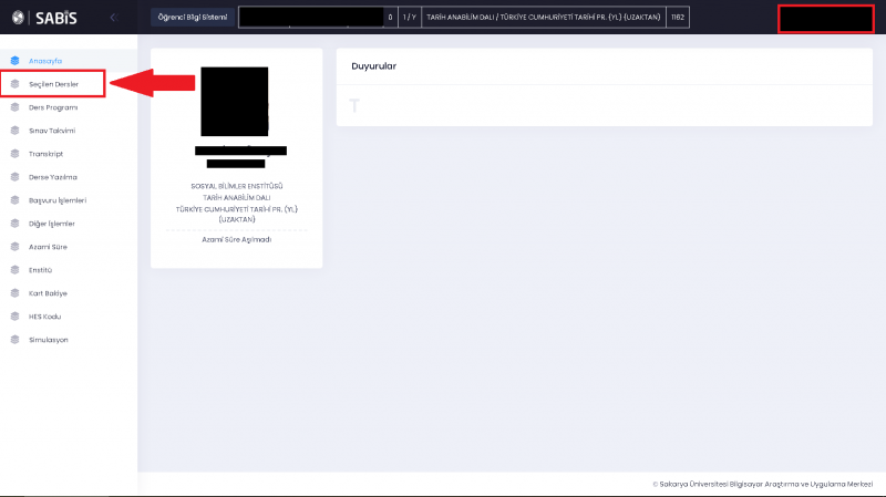 2022-2023 Bahar döneminde enstitümüzde dersler YÖK tarafından yeni bir karar alınana kadar online eğitimle yürütülecektir. Online derslere enstitümüze kayıtlı tüm öğrenciler SABİS / Öğrenci Bilgi Sistemi / Seçilen Dersler adımlarından katılabilir. İlgili görseller ektedir.Derslere katılamayanlar için ders videoları en geç 1 hafta içinde sisteme eklenmektedir.