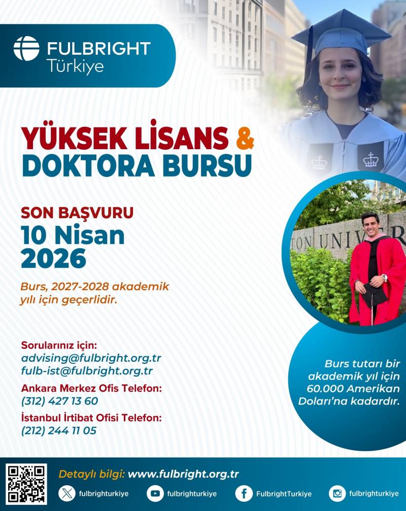 Komisyonumuz, lisansüstü eğitimlerini Amerika Birleşik Devletleri’nde yapmak isteyen öğrencilere ve mezunlara yönelik olarak Yüksek Lisans ve Doktora Bursları vermektedir. 2027-2028 akademik yılı güz döneminde başlamak üzere verilecek olan burslarımıza son başvuru tarihi 10 Nisan 2026’dır.